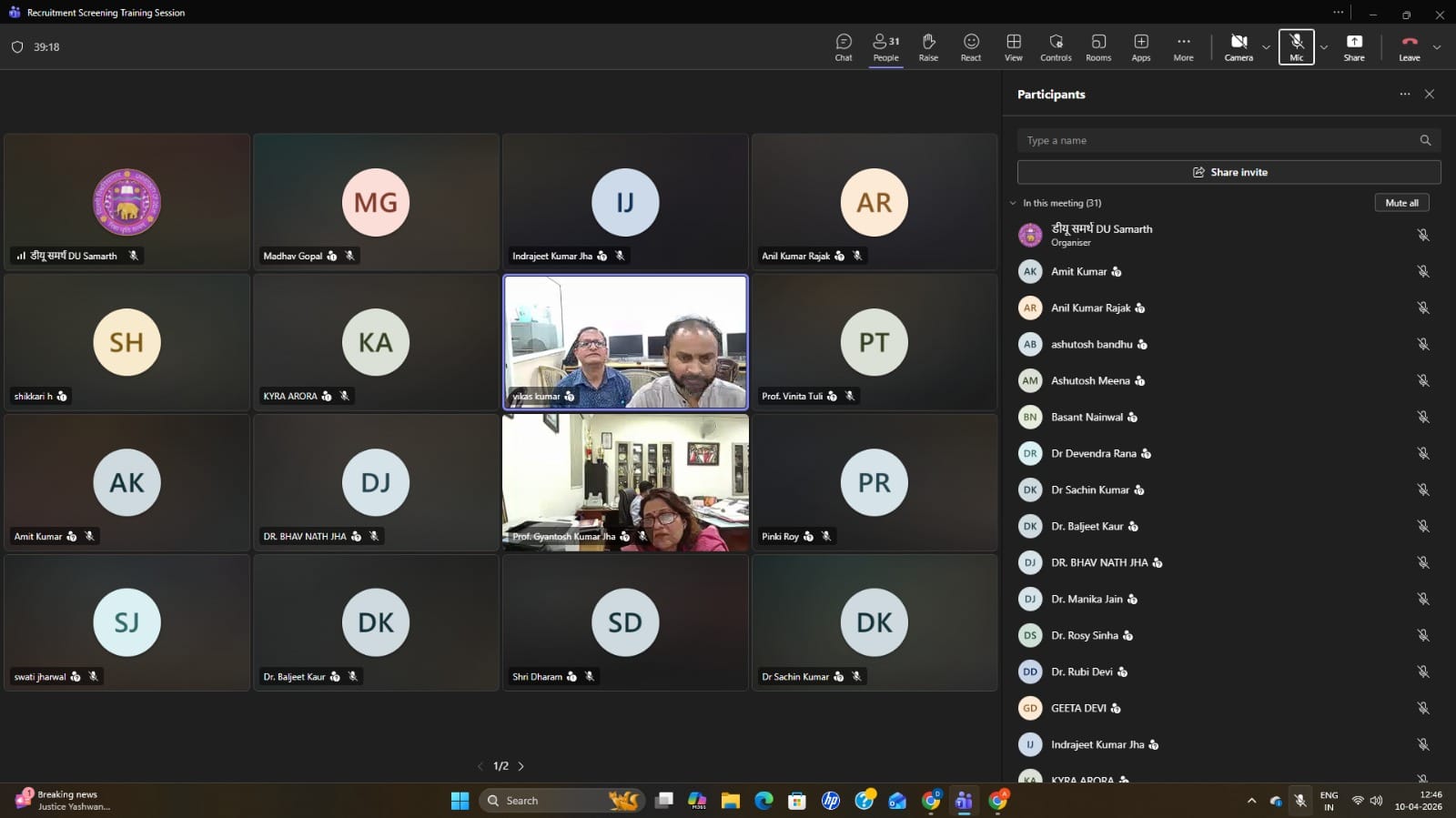 Recruitment Configuration Session on DU Samarth Portal - Dyal Singh College (April 10, 2026)